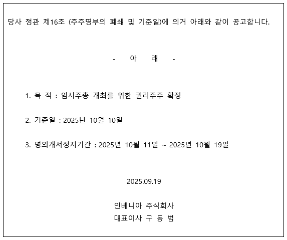 이전글 | 신주배정기준일 및 주식명의개서 정지 공고 2025-09-19 | ||